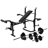 Festnight Gimnasios en Casa - Banco Musculación Multifunción Ajustable Plegable con Soporte Pesas, Pesas y Mancuernas 30,5 kg